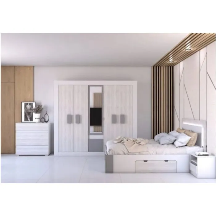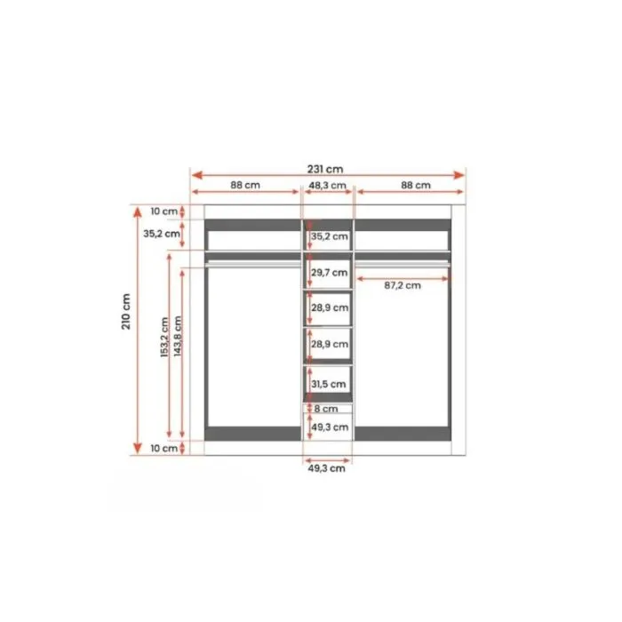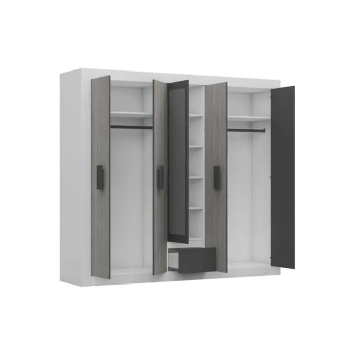 Garderobna omara ZEUS je narejena iz kvalitetne laminirane plošče, debeline 16 mm. Ima ABS robove, ki zagotavljajo večjo odpornost proti udarcem, vlagi in obrabi ter podaljšujejo njeno življenjsko dobo. ABS robovi ne le ščitijo pred poškodbami, ampak poskrbijo tudi za lepši in elegantnejši videz pohištva. Primerna je za vsako spalnico.
