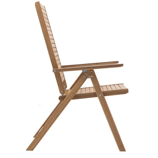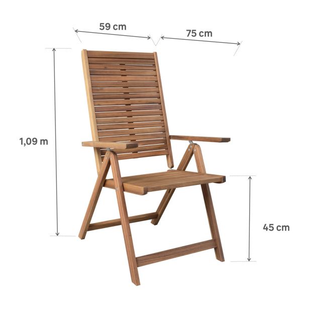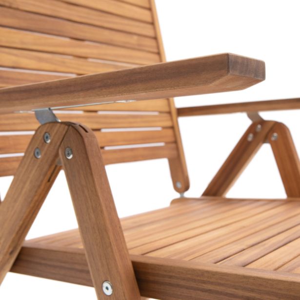 Večpozicijski stol Solaris II Origami je nepogrešljiv tako za obroke kot tudi za trenutke sprostitve. Njegova naslonjala se lahko nastavijo v 6 položajev, da se prilagodijo vsem vašim dejavnostim s komfortom. Lahek in zložljiv, ta acacijin stol očara z enostavno prenosljivostjo in praktičnostjo, ter ga je mogoče enostavno shraniti ali prepeljati. Debelina ojačanega lesa zagotavlja boljšo trajnost vašega pohištva, da ga lahko izkoriščate sezono za sezono.