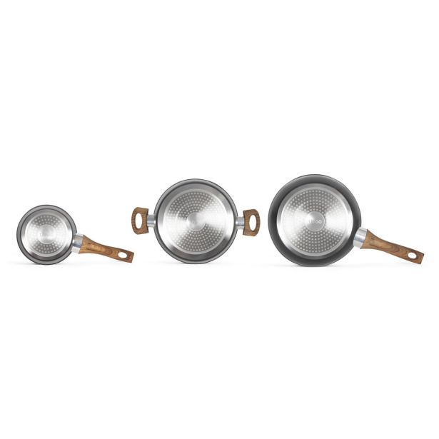 • Kovan aluminij z nelepljivo prevleko: preprečuje lepljenje hrane in omogoča enostavno čiščenje.