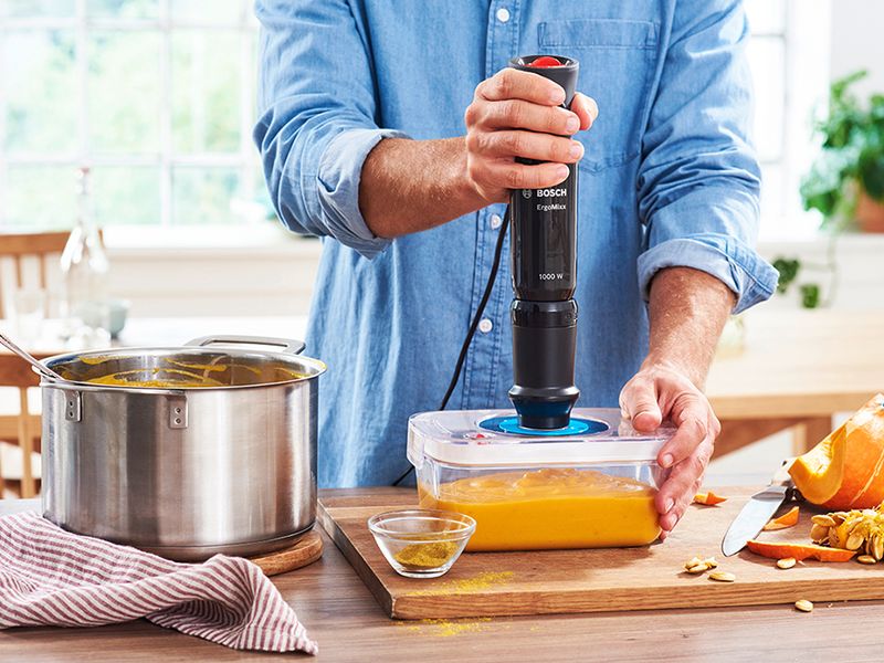 Bosch ErgoMixx Fresh omogoča, da svežino in aromo živil ohranite dlje časa. Nov sistem za shranjevanje živil je v pomoč vsej družini, saj ponuja preprosto pot do zdravega načina življenja. Zmogljiv 1000-vatni motor in nož QuattroBlade v ročnem mešalniku ErgoMixx poskrbita za pripravo okusnih kreacij iz sadja in zelenjave, kot so smoothieji ali juhe. Z enim samim klikom bo visokočinkovita vakuumska črpalka s pritiskom 500 mbar ročni mešalnik ErgoMixx Bosch spremenila v sistem za vakuumsko shranjevanje, ki je nemudoma pripravljen na uporabo.