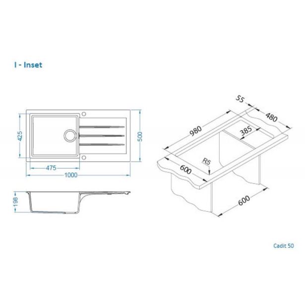 CADIT 50 se ponaša z ogromno posodo (475 x 425 x 198) in prostorno odcejalno površino. S svojim sodobnim in hkrati brezčasnim dizajnom in funkcionalnostjo bo zagotovo zadovoljil vaše potrebe v moderni kuhinji.