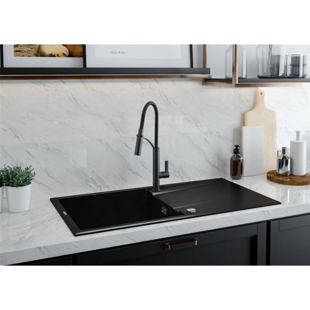 Granitno korito ERIDAN vas bo prepričalo s svojim videzom in funkcionalnostjo. Granit je izjemno trpežen material, odporen na praske, razbarvanje in visoke temperature. V globoki in prostorni komori lahko preprosto pomijete veliko posodo in pekač. V kompletu je Space saver sifon s posebnim dizajnom, s katerim boste pridobili dodaten prostor za posode za ločevanje odpadkov. Bogate barve pomivalnikov ERIDAN dajejo neomejene možnosti razporeditve. Za umivalnik lahko kupite kljuko in ograjo iz ponudbe Deante.