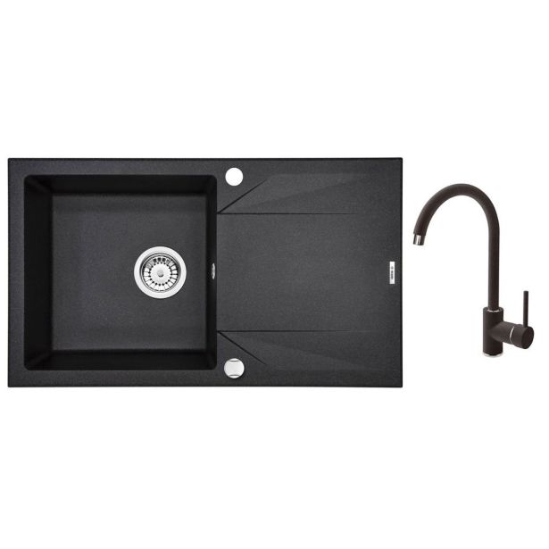 Odličen kuhinjski set sestavljen iz korita in armature. Močno granitno korito omogoča odlaganje vročih posod kar do 250°C. Poseben premaz preprečuje praske, ki bi lahko nastale zaradi premikanja posode po površini korita.