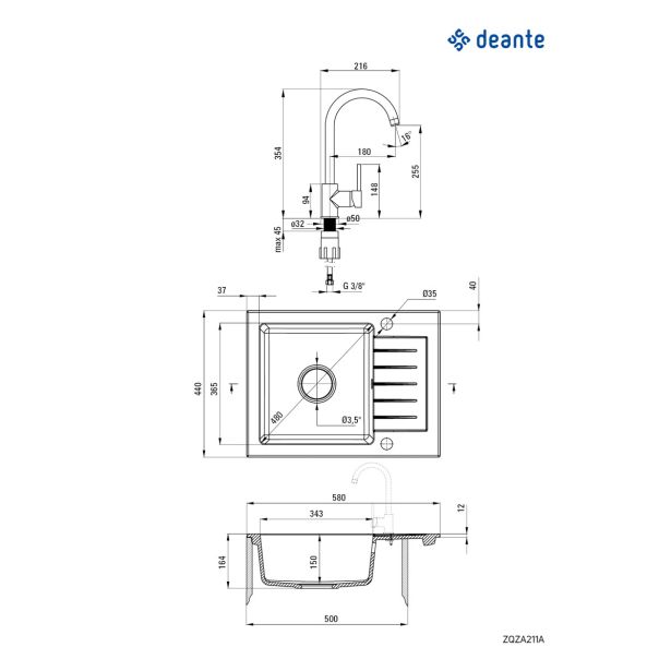 GRANITAL POMIVALNO KORITO DEANTE ZORBA ZQZA 211A SET Z ARMATURO