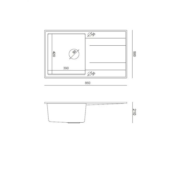 Enojno korito z odcejalnikom, dimenzij 86 x 50 x 21 cm.