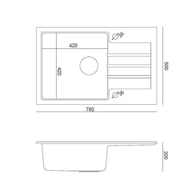 Enojno korito z odcejalnikom, dimenzij 78 x 50 x 20 cm.