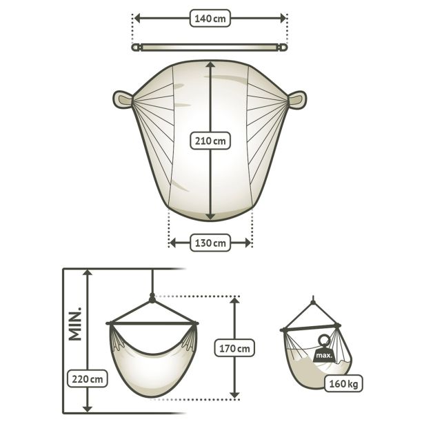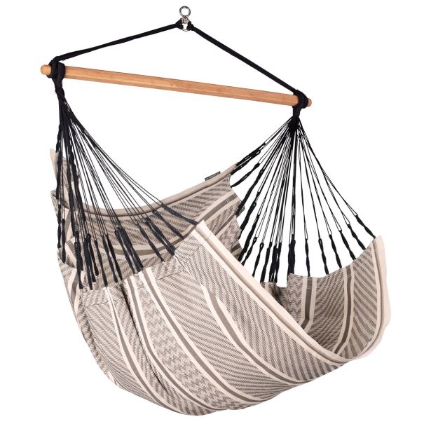 Viseči stol iz organsko pridelanega bombaža. Obesite ga v dnevni sobi ali na terasi in si ustvarite svoj kotiček za sprostitev. Dolga bombažna vlakna zagotavljajo mehkobo izdelka in njegovo trajnost.