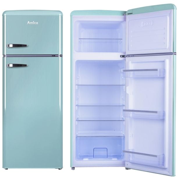 Prostostoječi retro hladilnik Amica KGC15632T poleg izjemnih lastnosti navdušuje s svojo izjemno značilno vintage obliko in barvo.