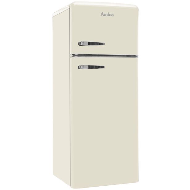 Prostostoječi retro hladilnik Amica KGC15635B poleg izjemnih lastnosti navdušuje s svojo izjemno značilno vintage obliko in barvo.