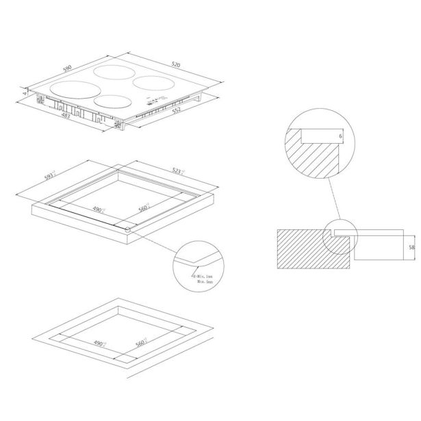 Indukcija, 60 cm, 4 kuhališča, 4x booster, timer, 7,2 kW, upravljanje s tipkami na dotik, indikator vročih plošč, črne barve