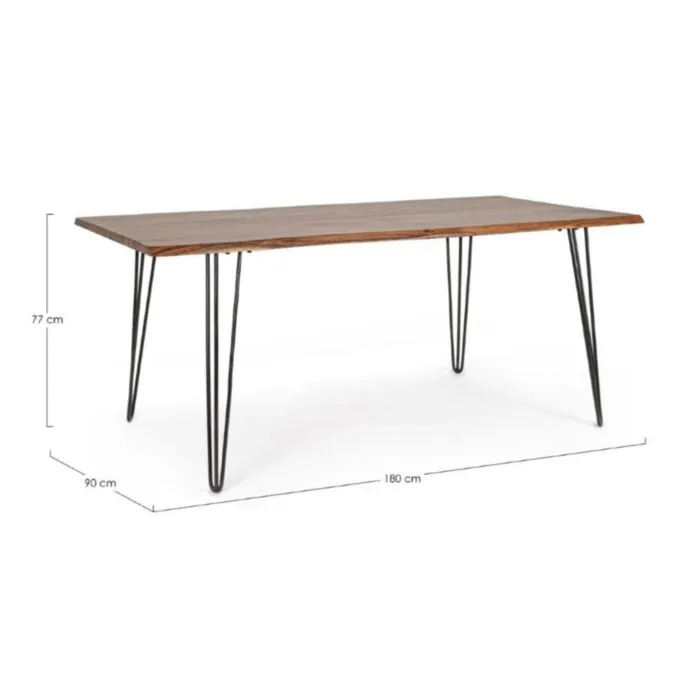 Jedilna miza BARROW 180X90 je atraktivna, saj ima robove mizne posebno valovito oblikovane. Mizna plošča je izdelana iz akacijevega lesa. Noge pa so izdelane iz kovine v črni barvi.