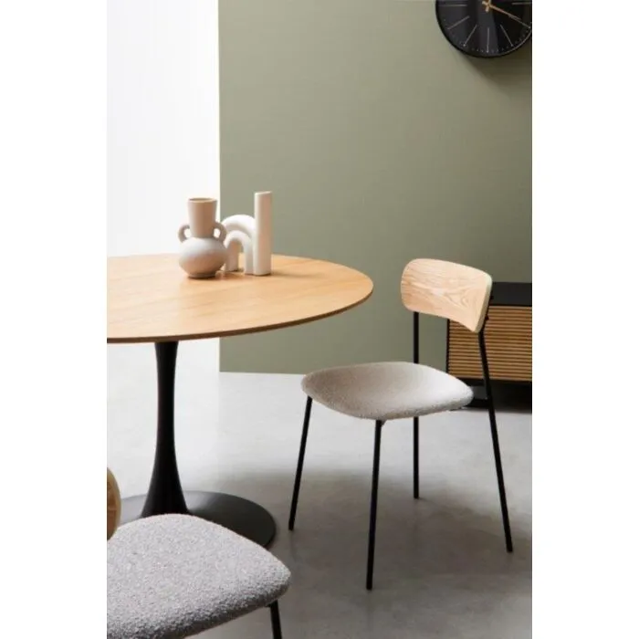 Jedilna miza BLOOM rjavo-črna, je elegantna okrogla jedilna miza, ki popestri vsak prostor. Mizna plošča je narejena iz furnirja, ima kovinske noge. Kombinacija barv, da poseben čar.