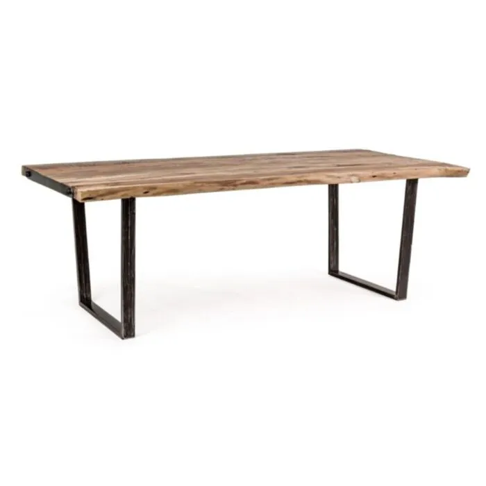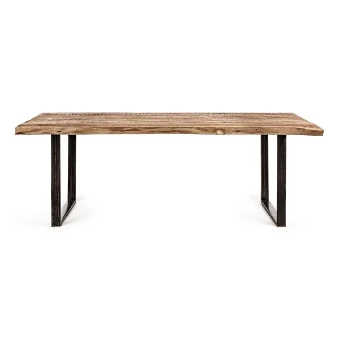 Jedilna miza ELMER 220X100 je naravnega videza. Ima kovinske črne noge. Mizna plošča je izdelana iz akacijevega lesa.