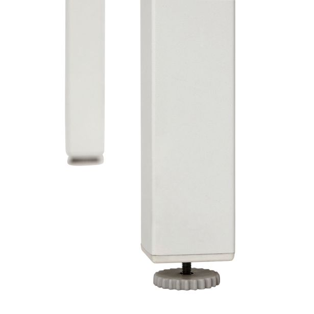 Fixiran, aluminijast okvir, prašno premazan, z 5 mm svilenotiskanimi kaljenimi steklenimi ploščami, z aluminijastim logotipom, okovje iz nerjavnega jekla 304, bela barva, karton.