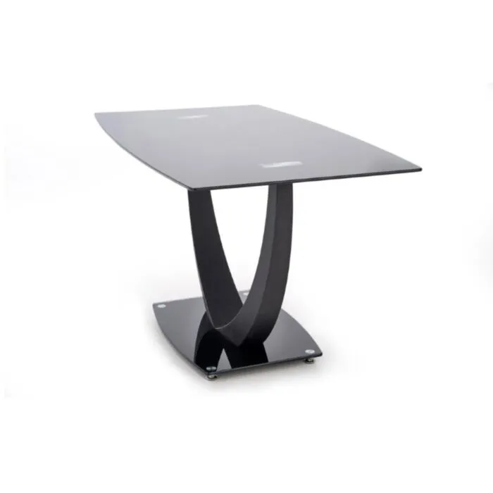 Jedilna miza MATEŠ je modernega dizajna ter elegantnega videza. Mizna plošča je narejena iz stekla. Podnožje je izdelano iz kovine v črni barvi.