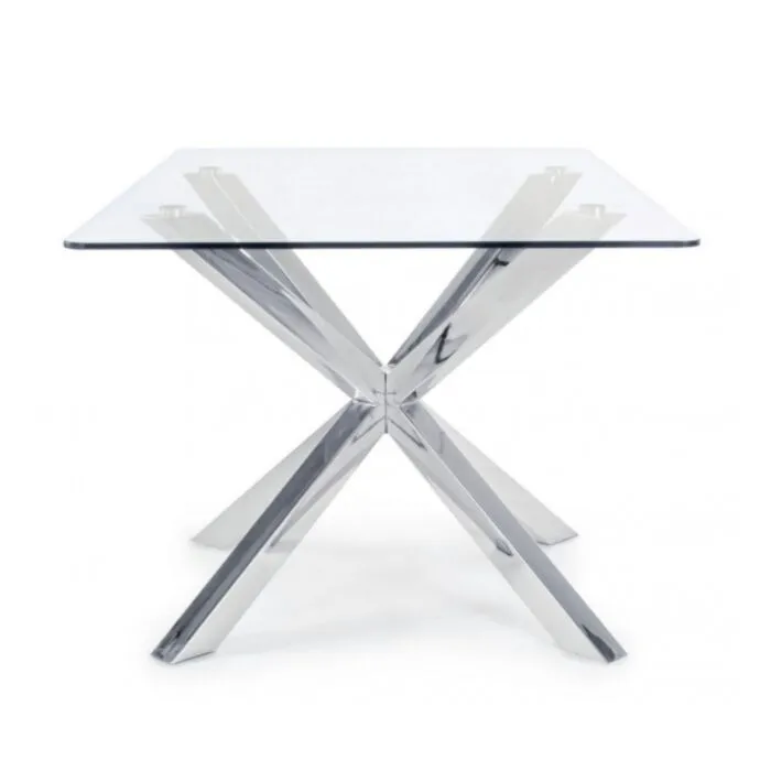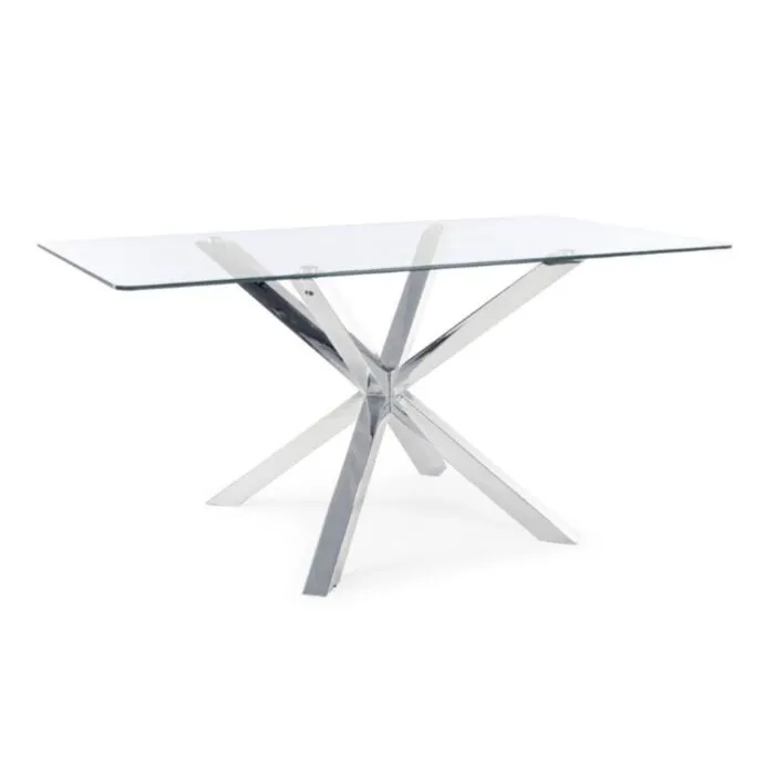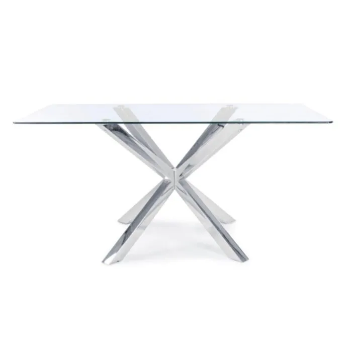 Jedillna miza MAY krom 160×90 je modernega dizajna. Noge so izdelane iz kromiranega jekla. Mizna plošča je izdelana iz kaljenega stekla debeline 10 mm.
