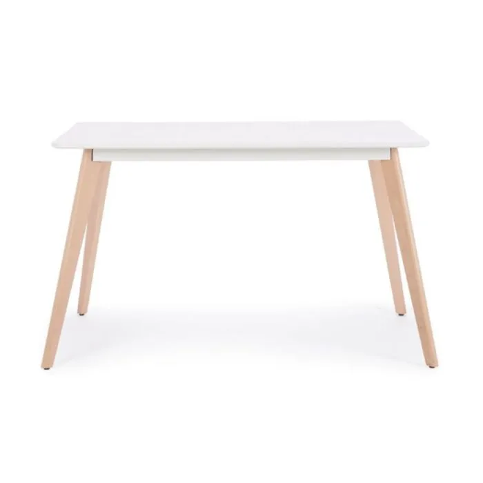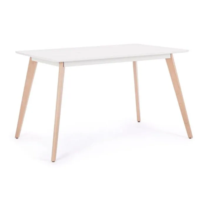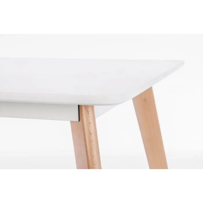 Jedilna miza MICHELANGELO 120X80 je klasičnega dizajna. Noga je izdelana iz kvalitetnih materialov. Mizna plošča je narejena iz MDF – ja v beli barvi, noge pa iz bukovega lesa.