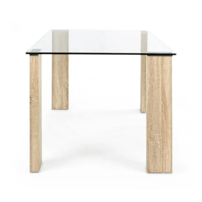 Jedilna miza NEW ARLEY 160X90 natur ima noge iz MDF-ja z učinkom lesa. Ima 12 mm debelo kaljeno steklo.