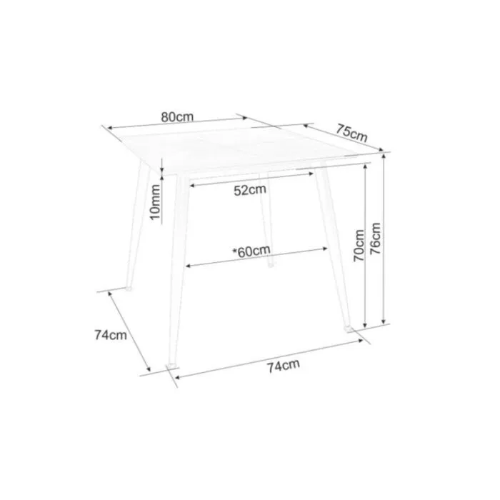 D: 80 cm x G: 80 cm x V: 76 cm