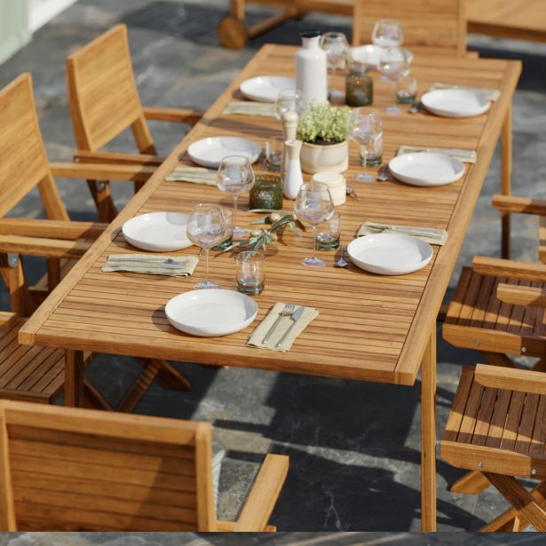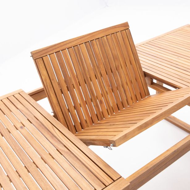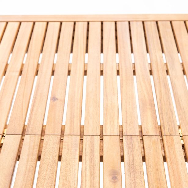 Trdna in kompaktna, ta akacijeva miza se ne boji vlage ali UV žarkov.