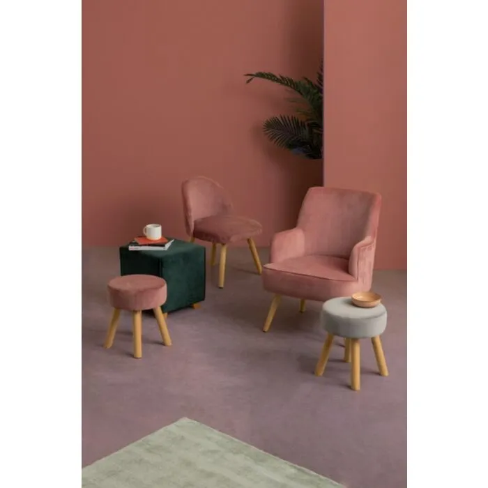 Jedilni stol ADELINE roza ima okvir iz borovega lesa in MDF-ja, kar zagotavlja kakovsot in vzdržljivost. Noge so narejene iz masivnega hrastovega lesa, kar zagotavlja stabilnost. Sediščje je oblazinjeno v mehko žametno tkanino, kar daje stolu dodatno udobje.