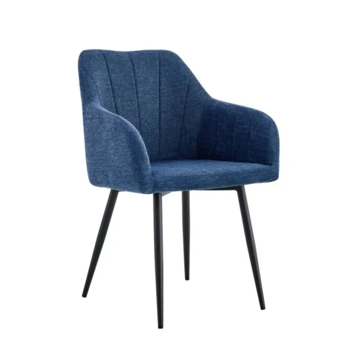 Jedilni stol ASTON modra je oblazinjen v kvalitetnem sivem blagu. Močna stabilna kovinska konstrukcija mu zagotavlja vzdržljivost ter stabilnost. Kuhinjski stol ASTON modra je nameščen na močne črne mat kovinske noge, ki so prašno barvane s debelino profila 1,2 mm. Dodatno udobnost pa mu zagotavljata naslona za roke. Stol zaradi svoje višine naslona nudi zelo udobno sedenje in podporo hrbtu.