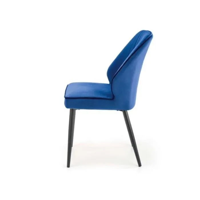 Jedilni stol BLUS, je kvaliteten in eleganten kos pohištva. Sedišče ter naslon za hrbet sta oblazinjena v mehko žametno tkanino, v modri barvi. Podnožje je narejeno iz kovine v črni barvi, kar daje stolu stabilnost. V vaš prostor vnese eleganco in toplino.