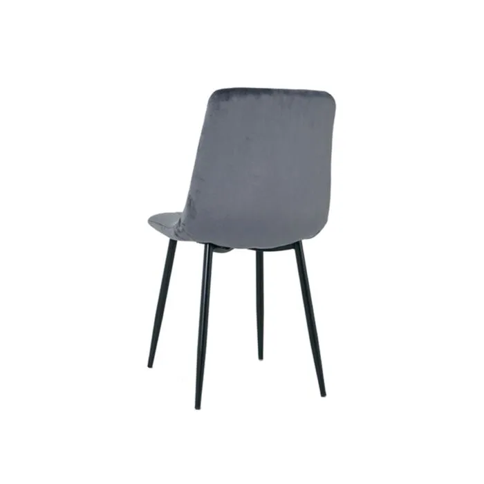 Jedilni stol FOXY velvet siva je odlična rešitev za kombiniranje v minimalističen ali industrijski stil prostora. Kombinacija sivega prešitega blaga s črnimi kovinskimi nogami ustvari eleganco in lahkotnost. Noge so prašno barvane s debelino profila 1,2 mm. Profiliran naslon omogoča optimalen položaj sedenja ter udobje. Raven vzorec šiva na tkanini pa okrepi tkanino oblazinjenja in ustvari dodatno eleganco.