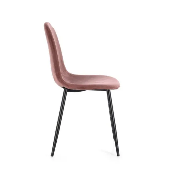Jedilni stol IRELIA roza ima kovinske noge v črni barvi, kar zagotavlja stabilnost. Obložen je s poliuretansko peno za dodatno udobje, katera je oblečena v mehko in kvalitetno žametno tkanino roza barve.