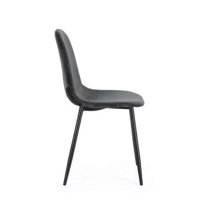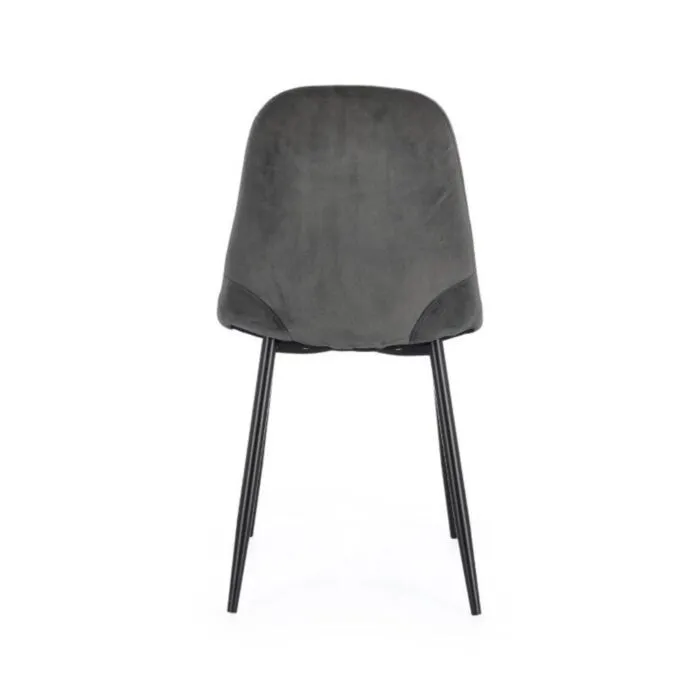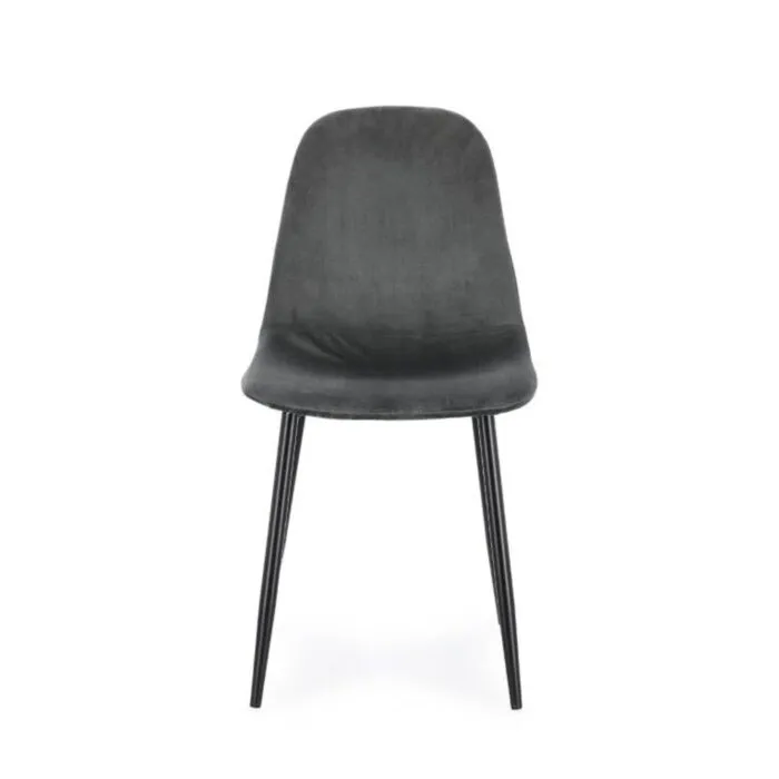 Jedilni stol IRELIA temno siva, ima kovinske noge v črni barvi. Oblazinjenje je iz poliuretanske pene, ki je oblečeno v mehko velvet tkanino za dodatno udobje.