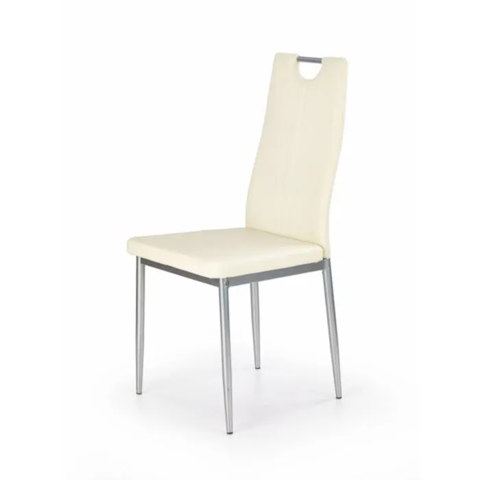 Kuhinjski jedilni stol KRAT, je hkrati elegantnega kakor tudi klasičnega videza. Sedišče je iz umetnega usnja katero je na voljo v več različnih barvah. Noge so narejene iz kovine v krom barvi. Stol je praktičen za uporabo, saj vsebuje ročaj za lažje premikanje stola.