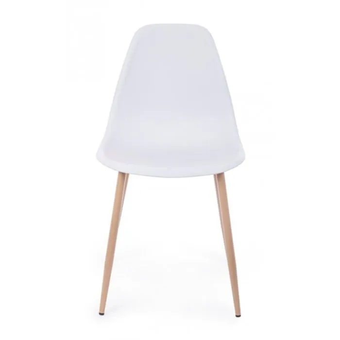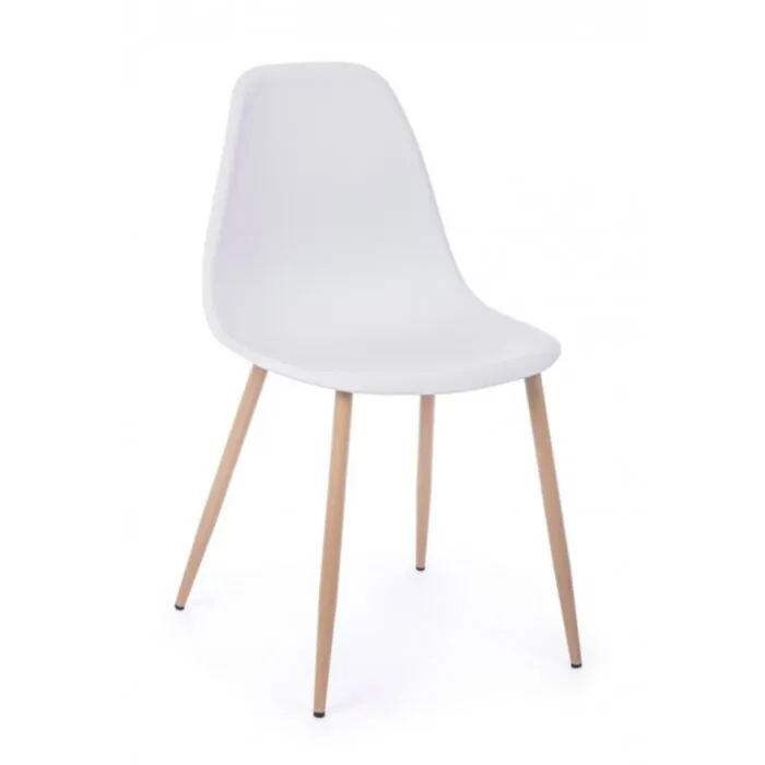 Jedilni stol MANDI je eleganten in moderen, podal se bo v vsako jedilnico. Na voljo je v beli barvi, s kovinskimi nogami v videzu lesa. Sedalni del je iz kakovostnega polipropilena kateri zagotavlja udobje in enostavno vzdrževanje.