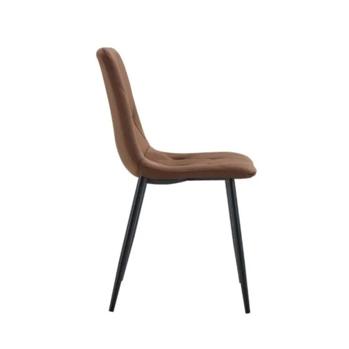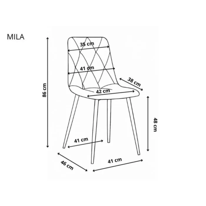 Jedilni stol MILA velvet rjava je odlična rešitev za kombiniranje v minimalističen ali industrijski stil prostora. Kombinacija rjavega prešitega blaga s črnimi kovinskimi nogami ustvari eleganco in lahkotnost. Noge so prašno barvane s debelino profila 1,2 mm. Profiliran naslon omogoča optimalen položaj sedenja ter udobje. Prešiti vzorec pa okrepi tkanino oblazinjenja in ustvari dodatno eleganco.