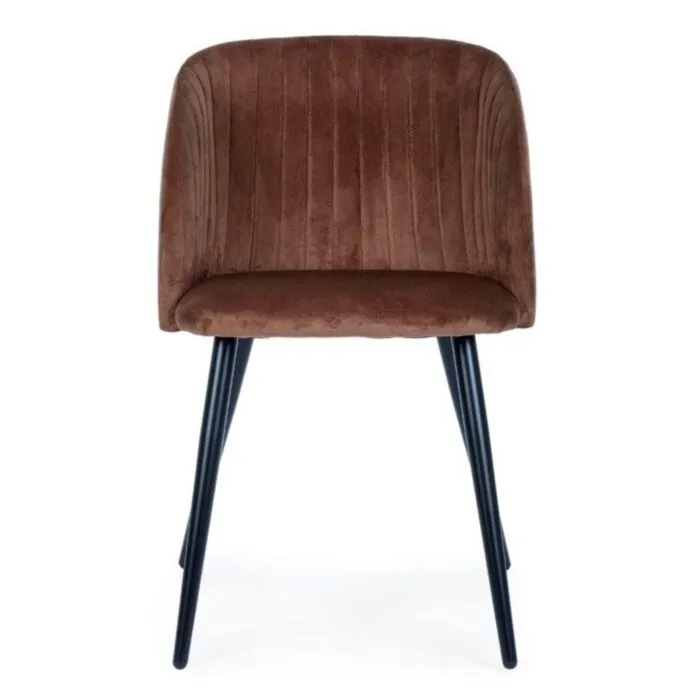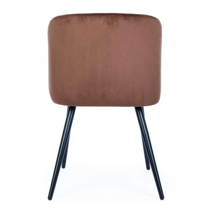 Jedilni stol QUEEN rjava ima noge iz črne kovine, sedalni del je iz poliuretanske pene, ki je oblečena v mehko žametno tkanino.
