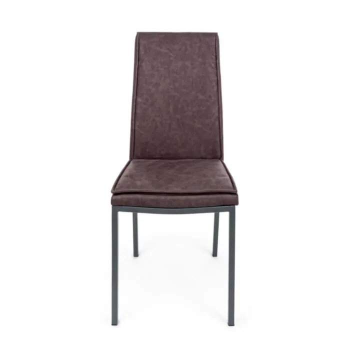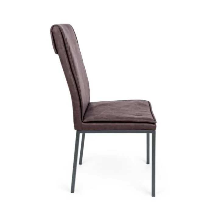 Jedilni stol SOFI rjava ima jekleno in vezano konstrukcijo.Polnilo je iz poliuretanske pene in oblečeno v rjavo umetno usnje. Noge so v črni barvi. Stol je zelo mehak in udoben.