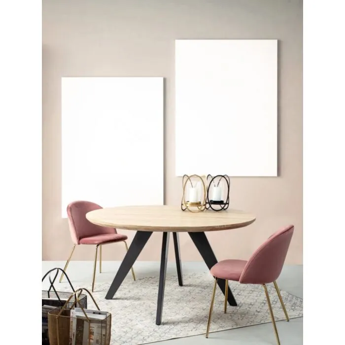Jedilni stol TANYA roza je sestavljen iz kovinskih nog z zlatim kromiranjem. Naslonjalo in sedež sta oblazinjena s poliuretansko peno, kar nudi dodatno udobje. Pena je oblečena v mehko žametno tkanino roza barve.