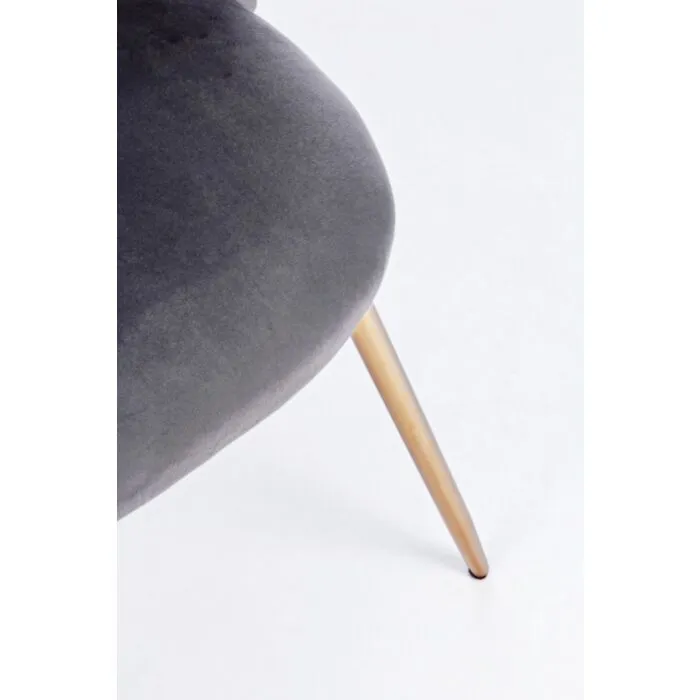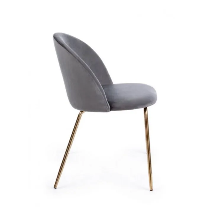 Kuhinjski stol TANYA je sestavljen iz kovinskih nog z zlatim kromiranjem, naslonjalo in sedež sta oblečena s poliuretansko peno, oblečeno v žamet (100% poliestrer).