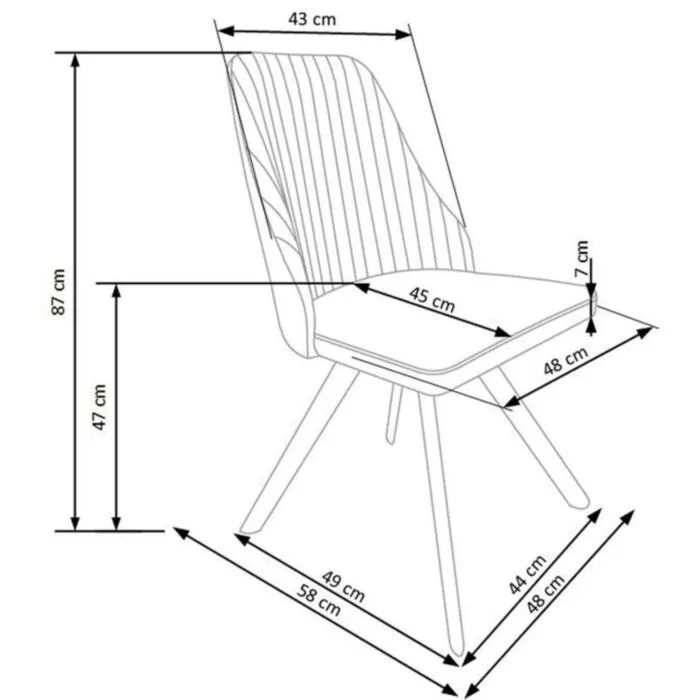 – D: 48 x G: 58 x V: 87 x V (do sedišča): 47 cm