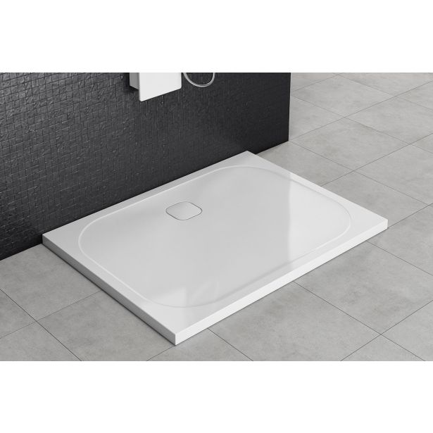 Tuš kad iz litega marmorja blesti v prepletu ravnih linij in lahkotnih krivulj.