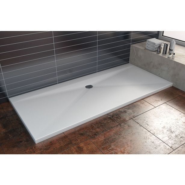 Tuš kad iz litega marmorja s plitvim dnom, ki jo je s prirezovanjem do dimenzije 140×70 moč popolnoma prilagoditi vašim potrebam. Minimalistično sodoben dizajn za maksimalno funkcionalnost. Brez podnožja. Za vgradnjo ali postavitev na tla.