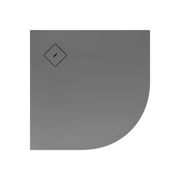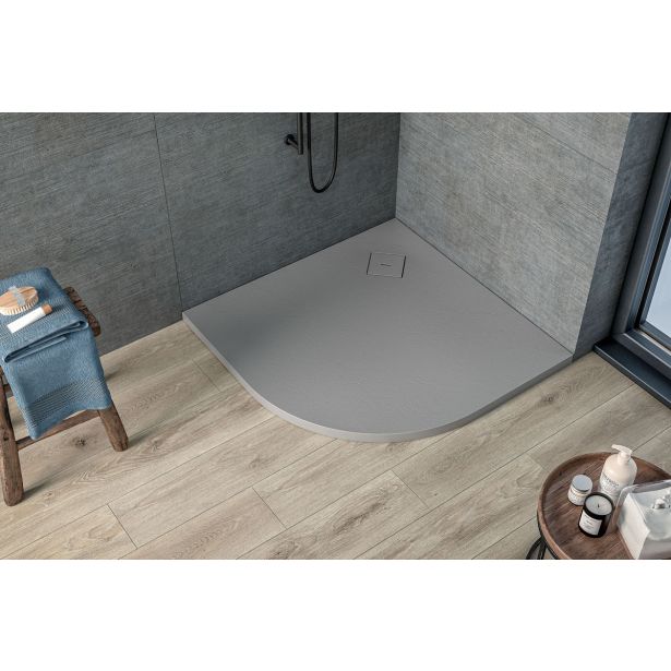 Polkrožna tuš kad iz litega marmorja z reliefno površino v temnem ali sivem odtenku čiste elegance.