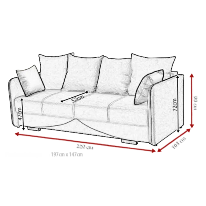 – D: 220 cm x G: 103 cm x V: 90 cm