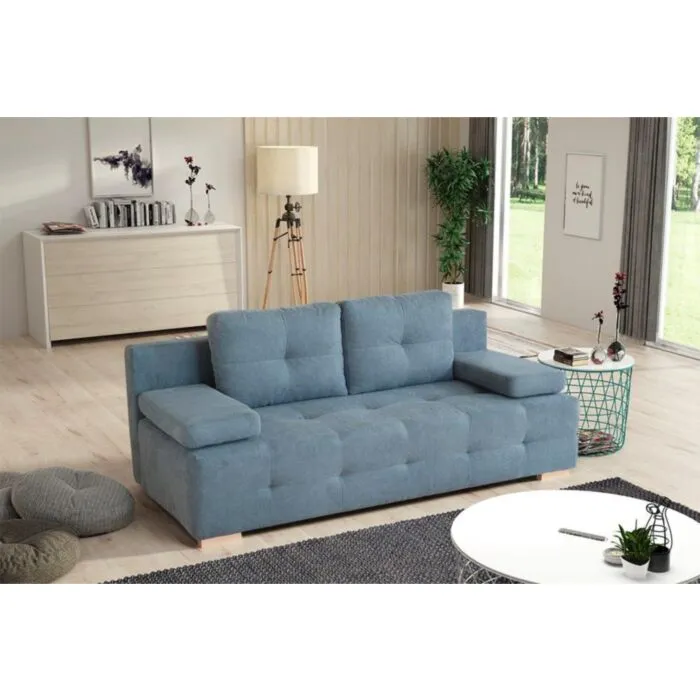 Kavč AMORIS je idealen kos pohištva, da popestri prostor. Je odlična garnitura po odlični ceni. Narejen je iz kvalitetnih materialov in kakovostnega blaga. Kavč je vzmeten z vzmetmi tipa BONELL. Raztegne se v ležišče in ima zaboj za spravljanje posteljnine. Poleg kavča prejmete tudi vse blazine, ki so prikazane na zgornji sliki.
