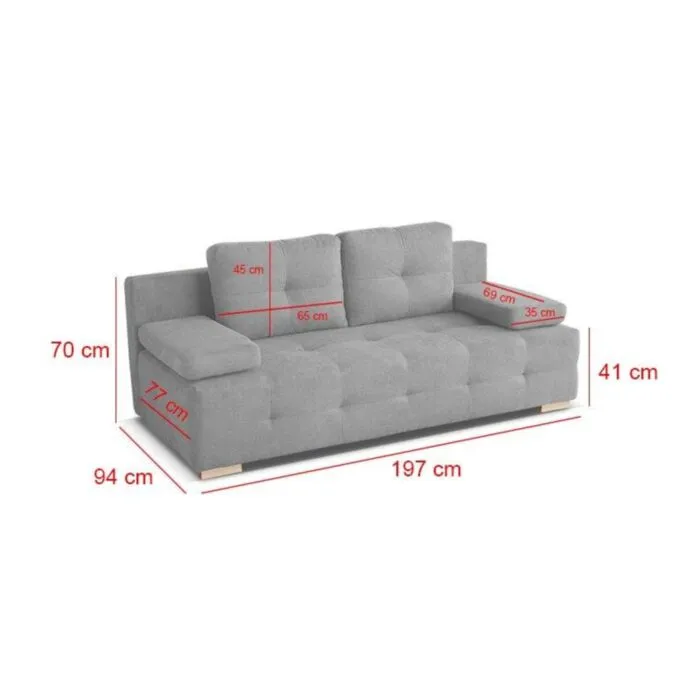 Kavč AMORIS je idealen kos pohištva, da popestri prostor. Je odlična garnitura po odlični ceni. Narejen je iz kvalitetnih materialov in kakovostnega blaga. Kavč je vzmeten z vzmetmi tipa BONELL. Raztegne se v ležišče in ima zaboj za spravljanje posteljnine. Poleg kavča prejmete tudi vse blazine, ki so prikazane na zgornji sliki.