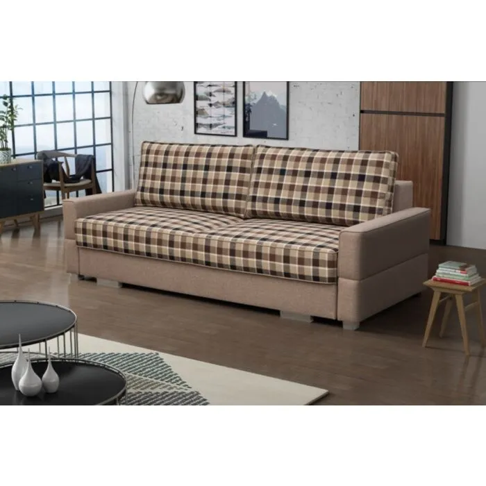 Retro kavč BRANE je praktičen in raztegljiv. Narejen je iz kvalitetnega blaga. Pri raztegnitvi vam pomaga mehanizem. Kavč ima predal za spravljanje posteljnine. Ima valovito vzmetenje.