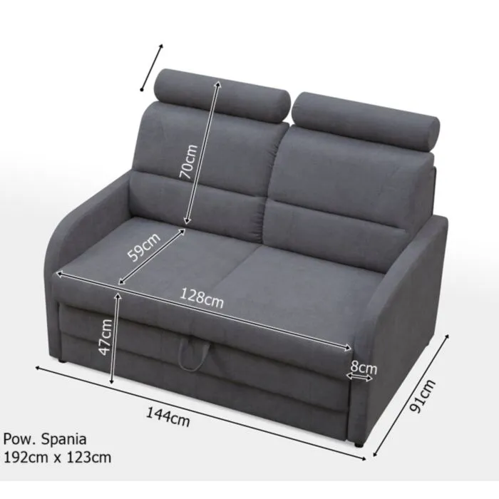 KLIF je moderen in eleganten raztegljiv kavč iz kakovostne tkanine. Je vzmeten z Bonell vzmetenjem, zato je spanje na njem udobno. Ima prostor za shranjevanje posteljnine. Vzglavje je nastavljivo po višini. V kompletu dobite še dve okrasni blazini.