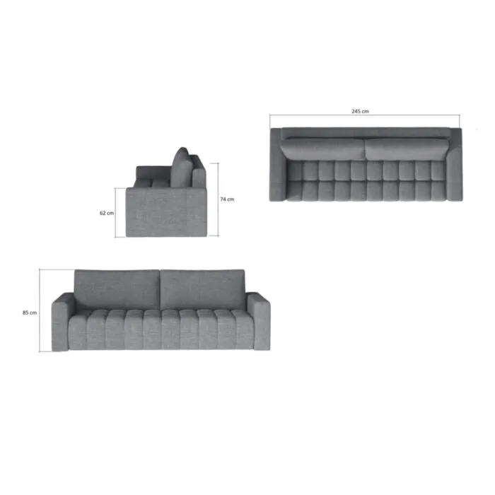 – D: 247 cm x G: 97 cm x V: 92 cm