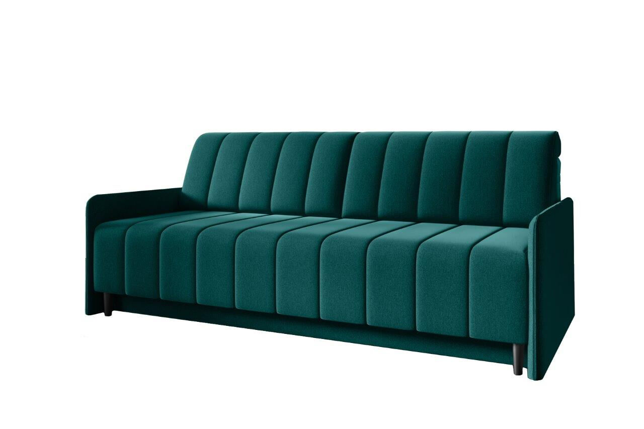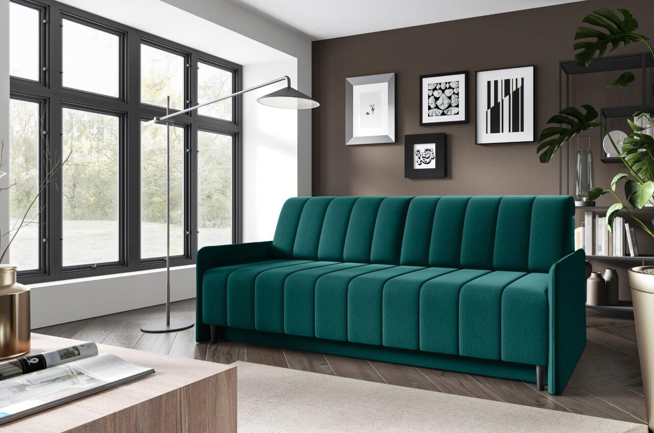 Kavč MELANI je idealen kos pohištva, da popestri prostor. Narejen je iz kvalitetnih materialov in kakovostnega blaga. Kavč je vzmeten. Raztegne se v ležišče in ima zaboj za spravljanje posteljnine.