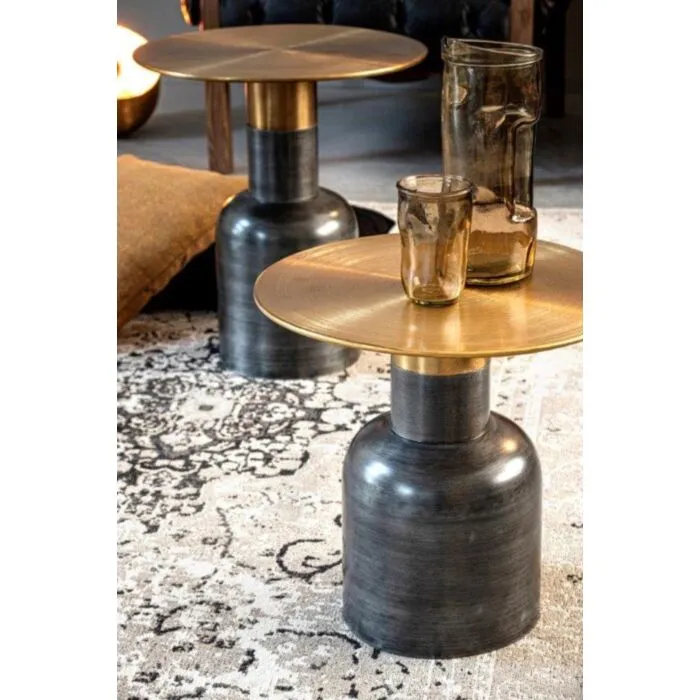 Klubska miza ALOPA je v kombinaciji zlate in nežno črne barve. Narejena je iz kovine in oblečena v medenino. Mizna plošča je v zlati barvi ter je zelo stabilna in priročna.