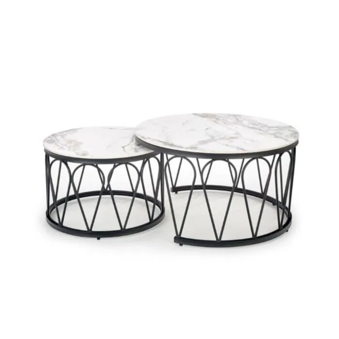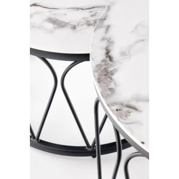 Klubska mizica AFNA vas bo navdušila. Narejena je iz kovine. Mizna plošča je imitacije marmorja, kar dodatno popestri vaš prostor in mu doprinese poseben čar elegance.